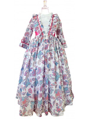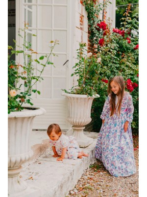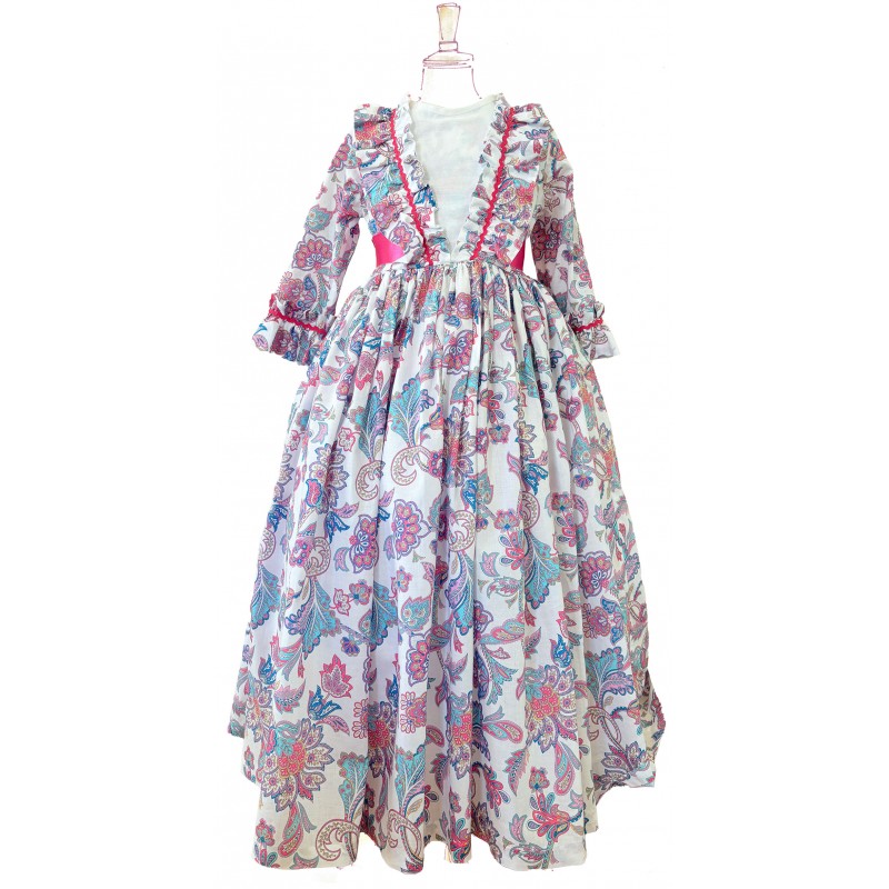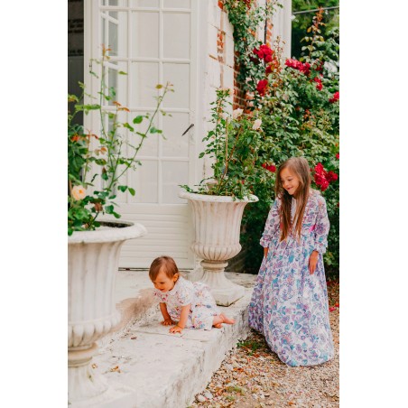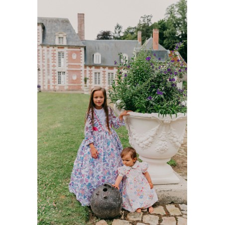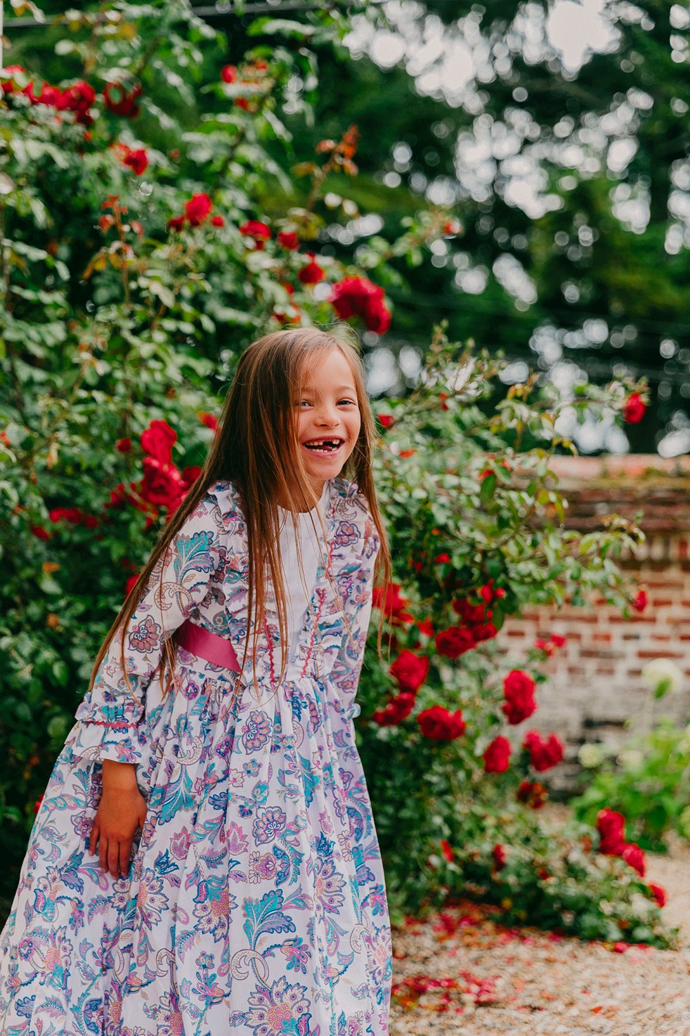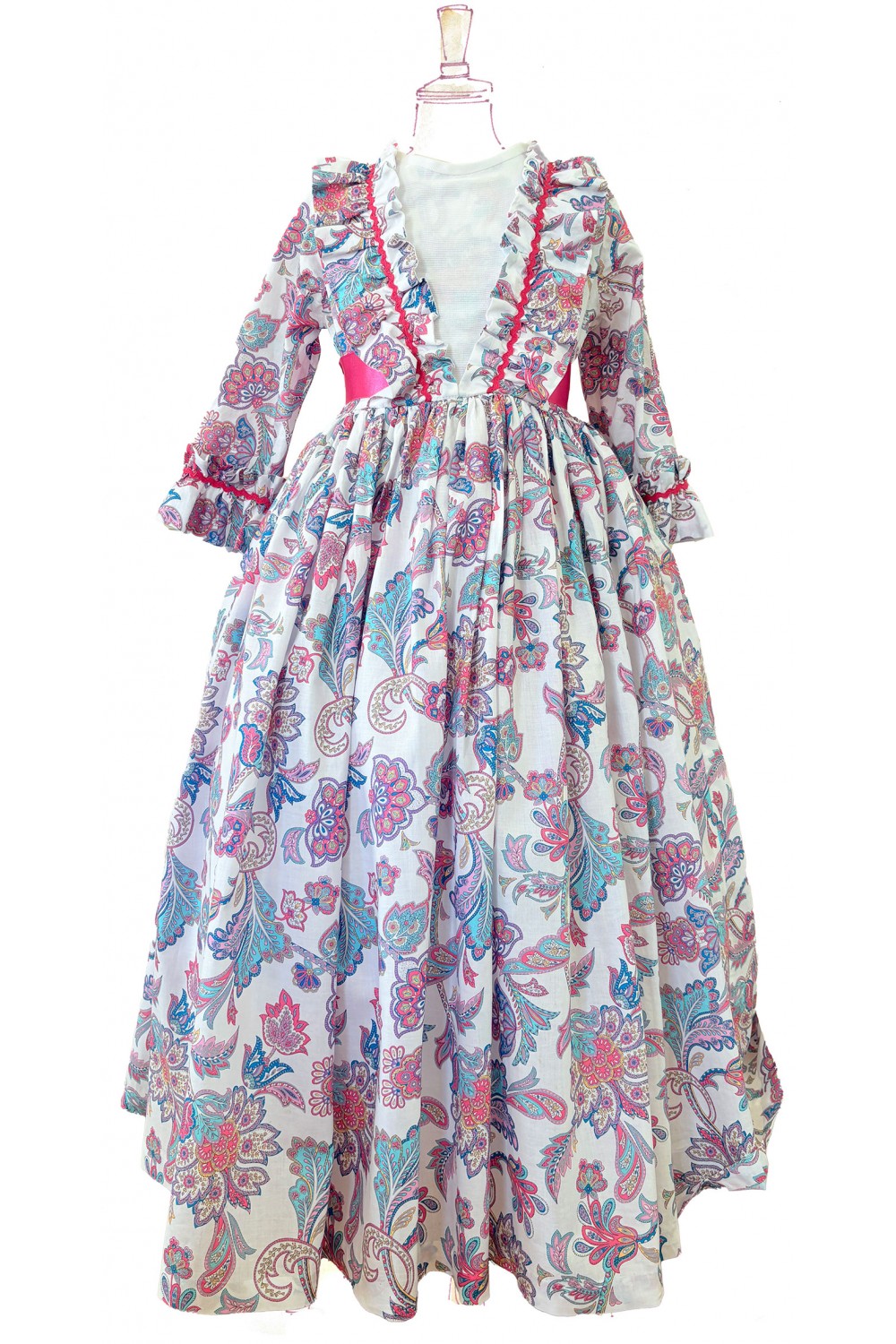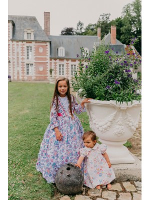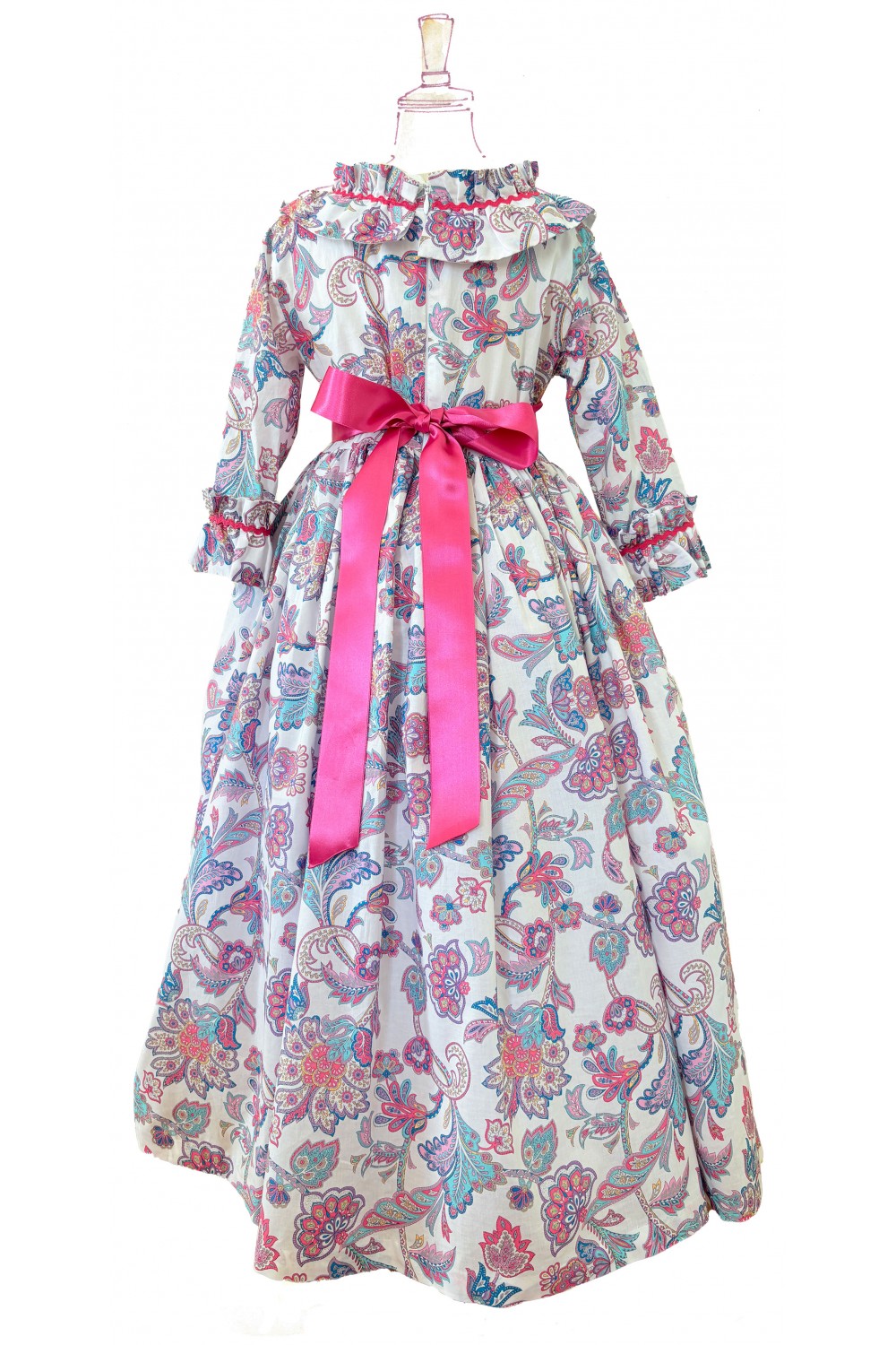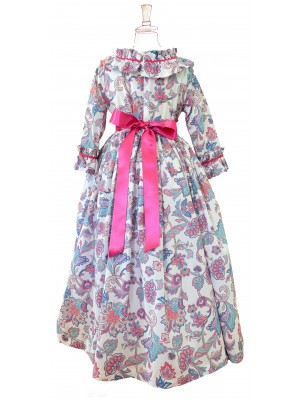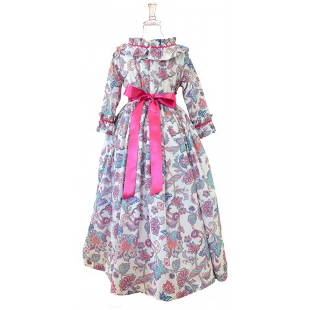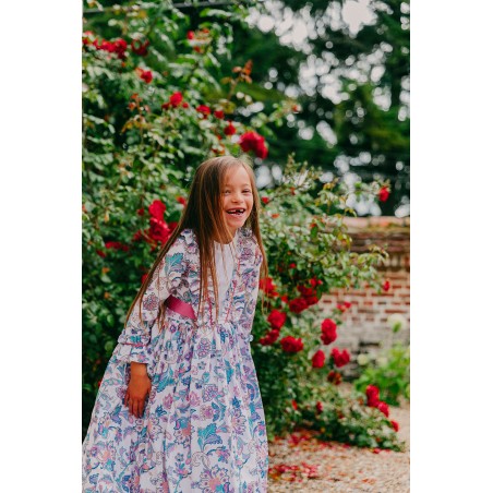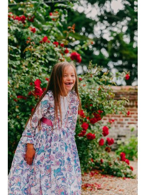 Floral Marquise pink cotton dress with matching plait and a satin belt.