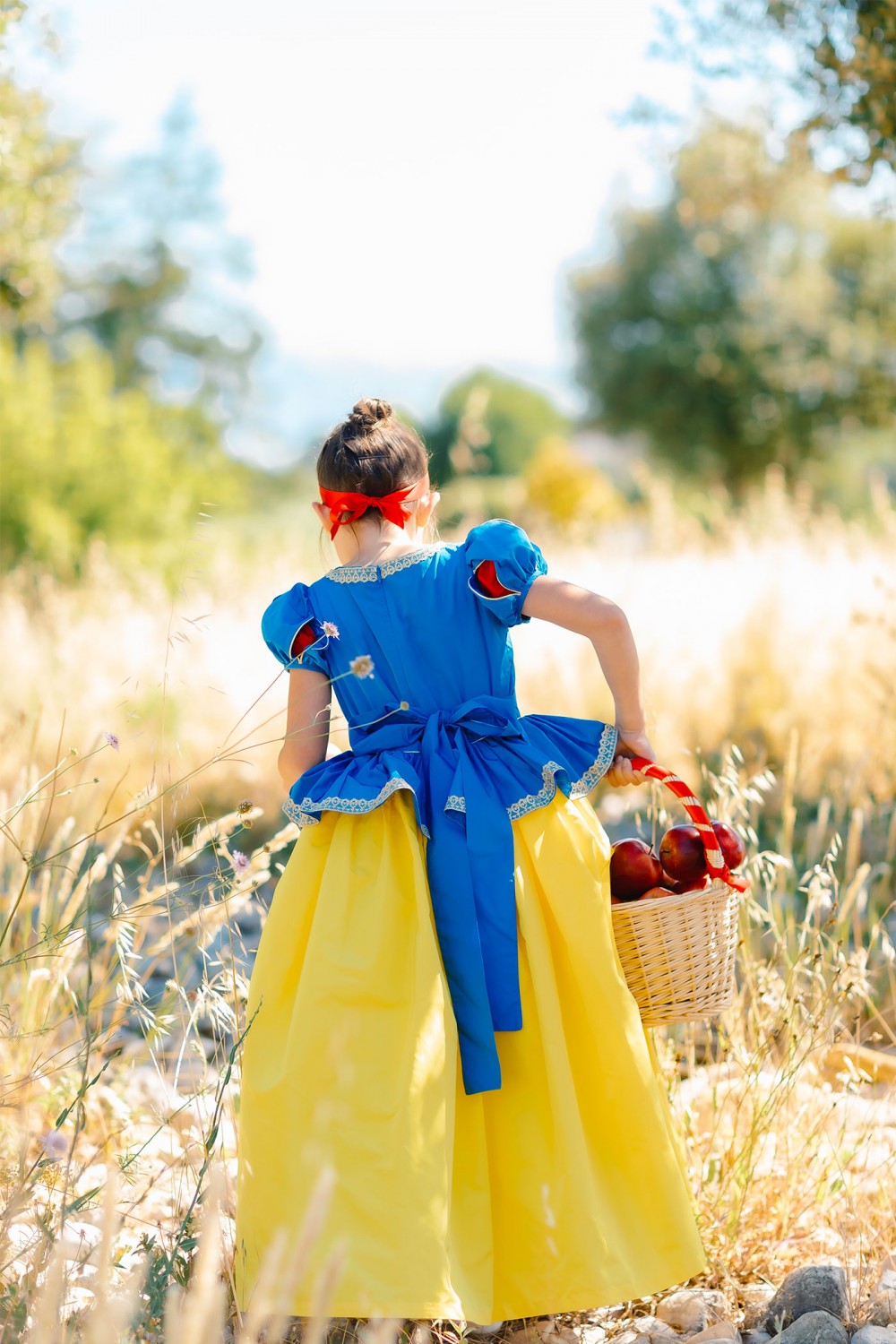 Robe à basque inspirée par la robe de Blanche-Neige en taffetas ultra-luxe.